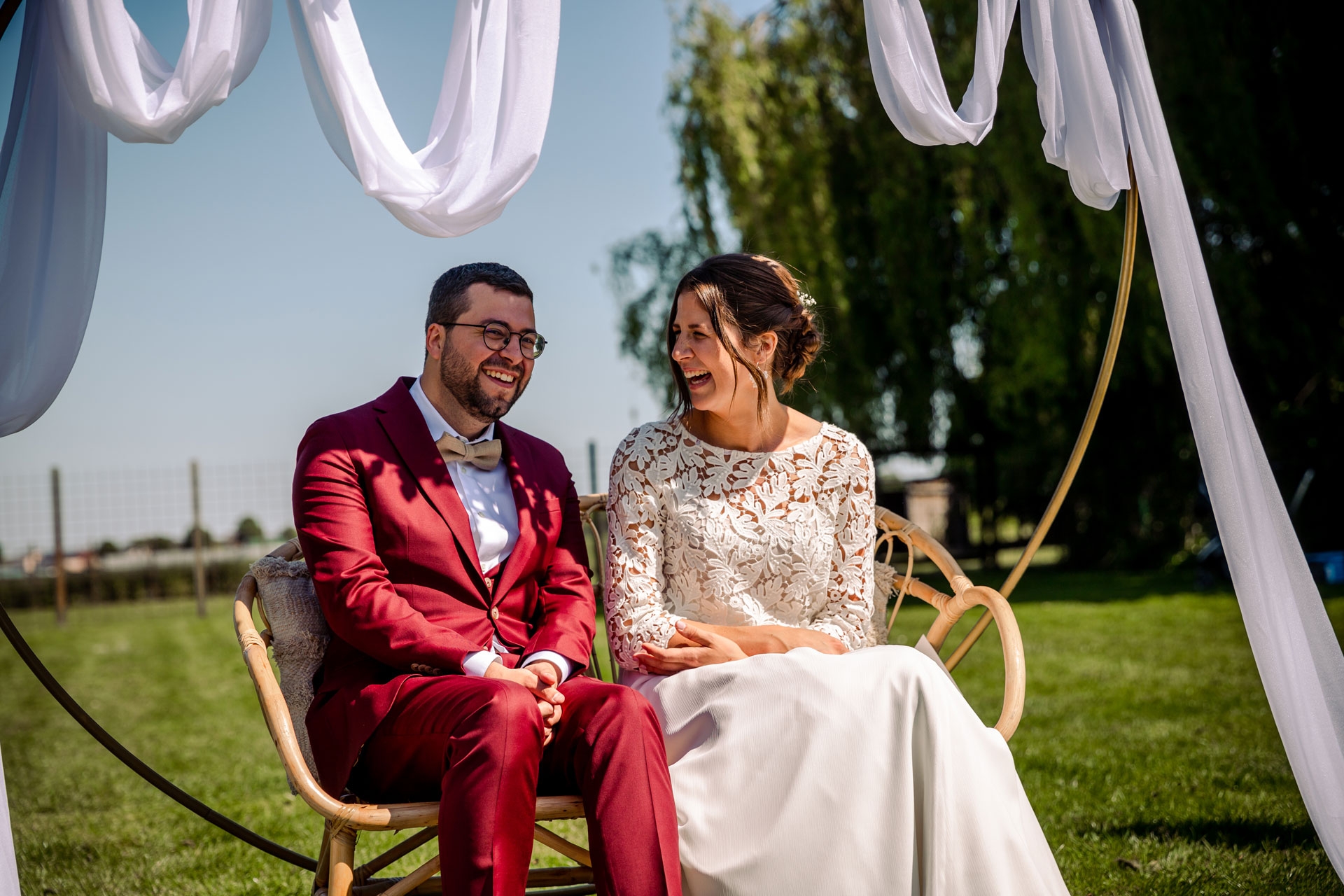J'ai eu la joie de les accompagner pour le reportage photo de leur mariage, depuis la cérémonie civile qui s’est déroulée dans la très jolie mairie de Lambersart, jusqu’à la cérémonie laïque, le vin d’honneur, les photos de couple et la soirée au superbe domaine de Ronceval à Mouscron, en Belgique.